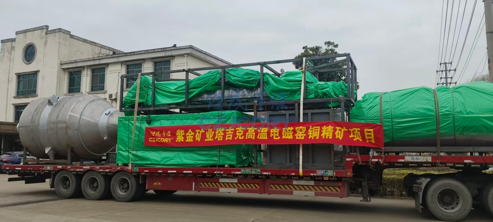 紫金矿业塔吉克铜精矿干燥-煅烧项目,电磁高温回转窑整装发货!